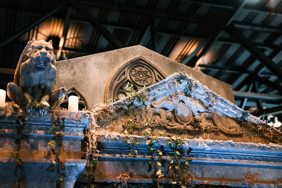 The ultimate addition to your cemetery scene. Can be used as a static facade, or as an entryway to an attraction. The mausoleum sits on a slab that is 9'-6" wide and 6'-6" deep. Stands just shy of 14' tall. Flat roof allows you to put props on top. Customizations/additions may come at an additional cost. Contact for pricing.